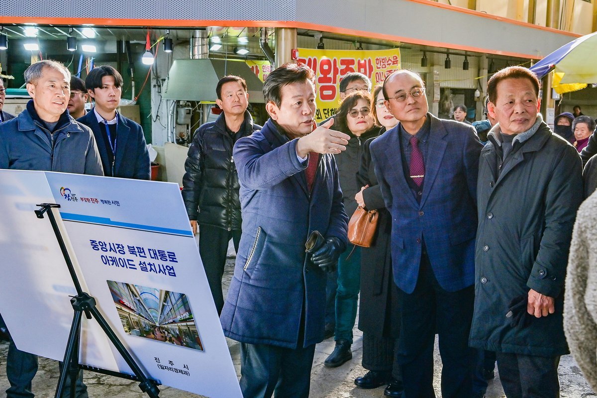 현장점검에 나선 조규일 진주시장은 “중앙시장 북편 대통로 아케이드 설치사업이 성공적으로 마무리될 수 있도록 최선을 다하겠다”며 “앞으로 상인들의 목소리를 적극적으로 반영해 지역 경제에 활력을 불어넣을 수 있도록 지속적으로 노력하겠다”고 말했다.