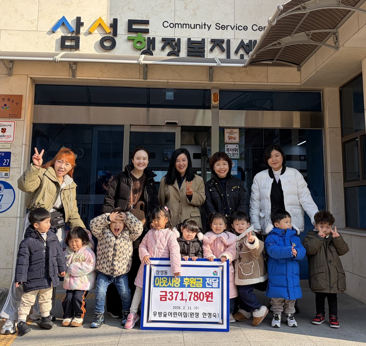 박숙진 삼성동장은 “우방숲어린이집의 후원에 깊이 감사드린다”며 “아이들의 참여로 이루어진 이번 후원은 그 자체로 큰 의미가 있는 만큼 많은 이들에게 긍정적인 울림을 전하는 사례가 될 것”이라고 말했다.
