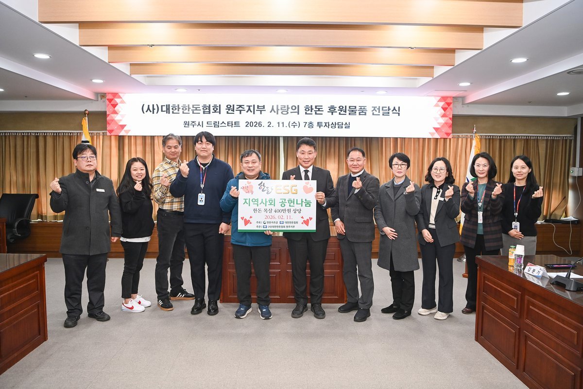김문기 부시장은 “매년 취약계층을 위해 나눔을 실천해 주시는 대한한돈협회 원주지부에 진심으로 감사드린다”며 “보내주신 소중한 물품은 각 가정이 따뜻한 명절을 보낼 수 있도록 신속히 전달하겠다”고 말했다.
