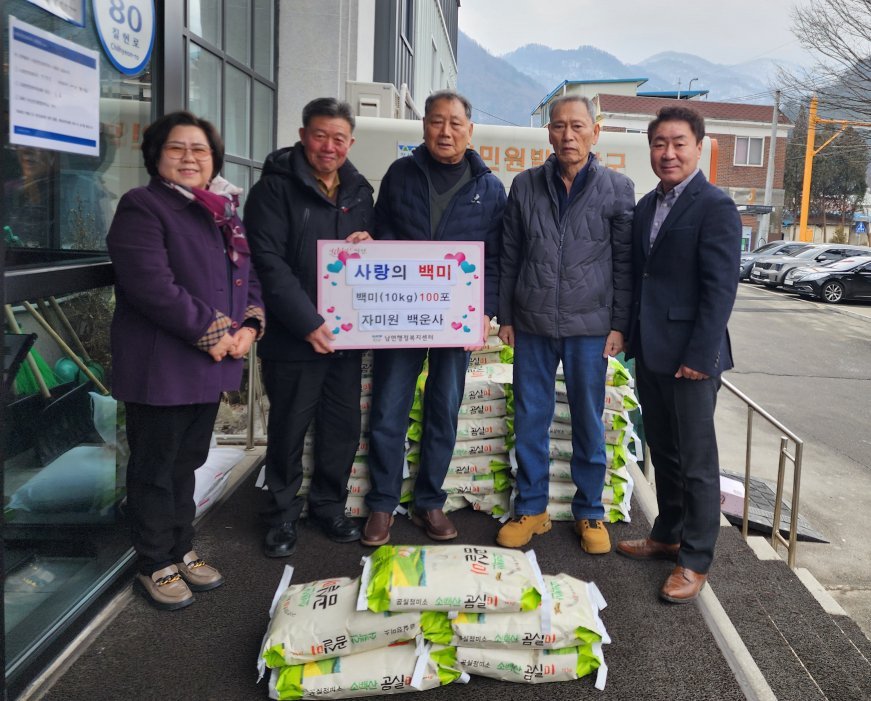 황재흠 남면장은 “해마다 지역의 어려운 이웃을 위해 백미를 기부해 주셔서 감사드린다”며 “기탁받은 백미는 설 명절 전에 취약계층 가구에 소중히 전달하겠다”고 말했다.