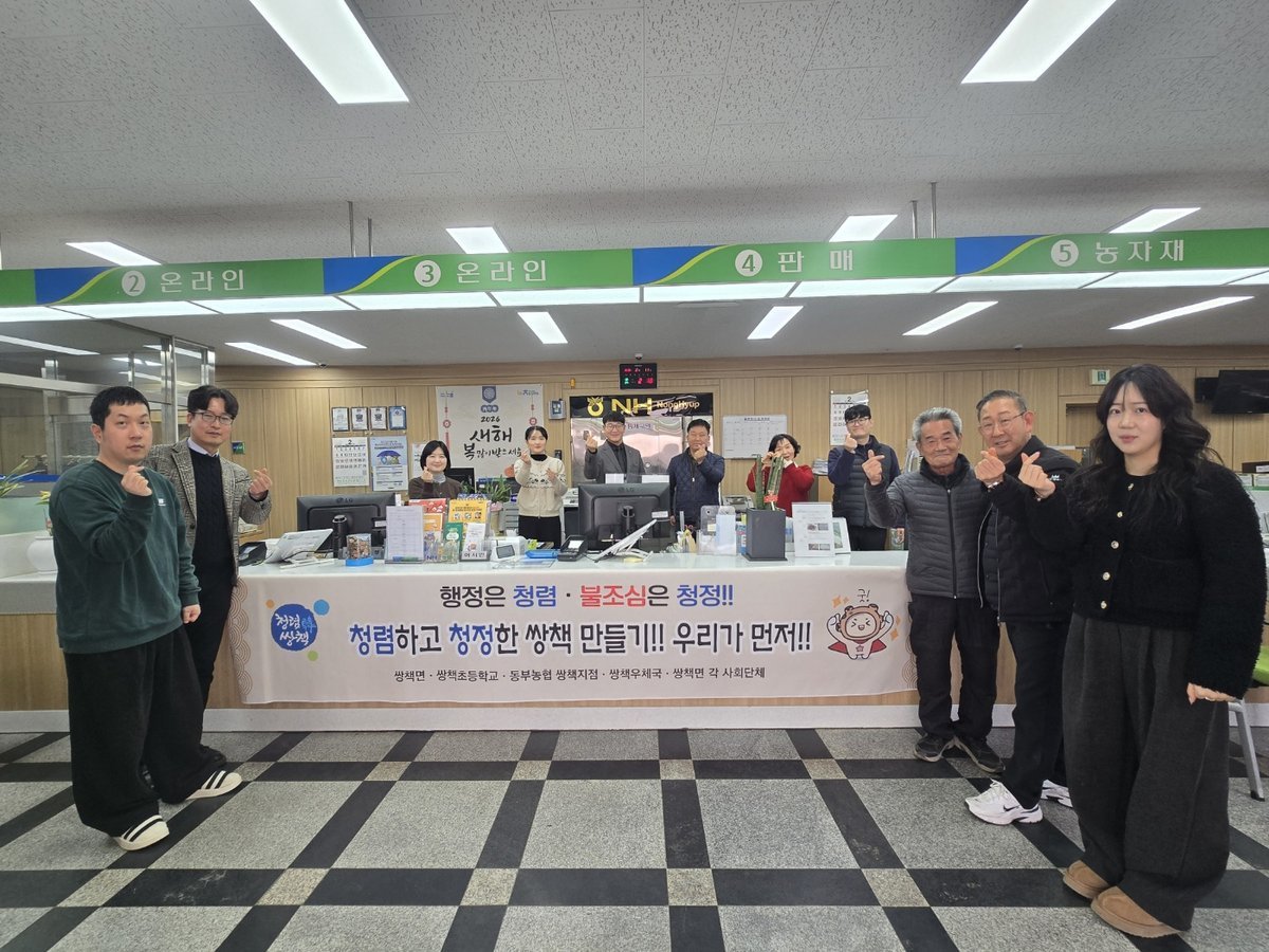 작년 추석 명절에 이어 2026년 병오년 새해에도 쌍책면은 동부농협 쌍책지점, 쌍책우체국, 쌍책초등학교와 함께 주민들을 대상으로 청렴에 대한 굳은 실천 의지를 전했다.