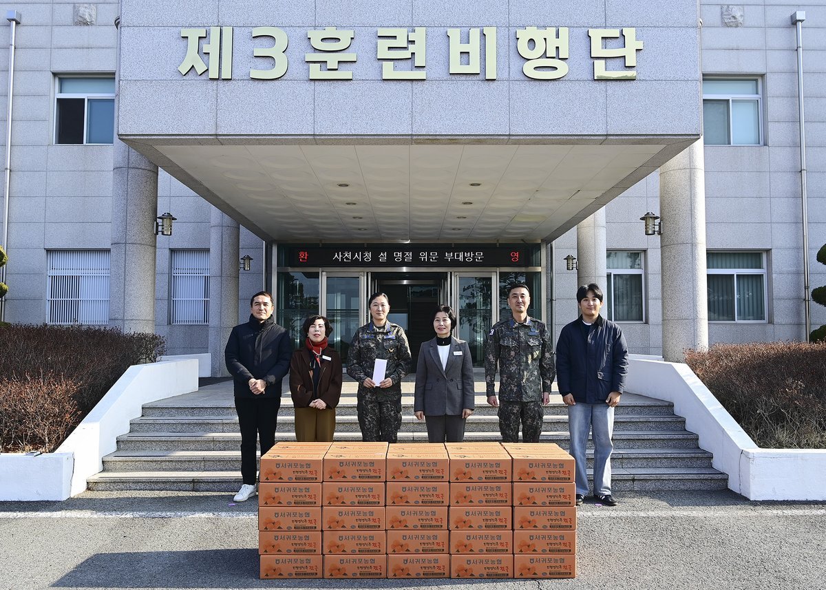 [아시아월드뉴스] 사천시는 설 명절을 맞아 공군제3훈련비행단을 비롯한 관내 주요 군부대를 방문해 햄버거, 귤 등 위문품을 전달하며 장병들의 노고에 깊은 감사의 뜻을 전했다.