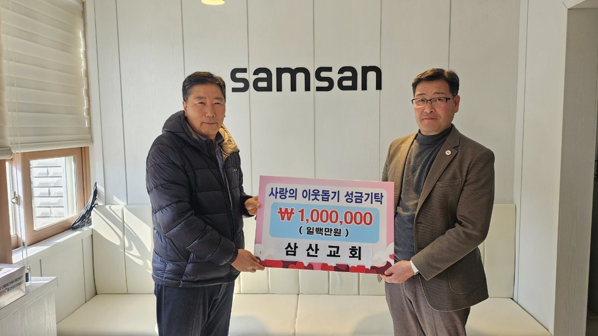 삼산교회는 그동안에도 여러차례 성금을 기탁하며 꾸준한 나눔을 실천해 오고 있으며 이번 성금 역시 성도들이 자발적으로 모은 정성으로 관내 어려운 이웃을 위해 뜻깊게 사용되기를 바란다고 전했다.