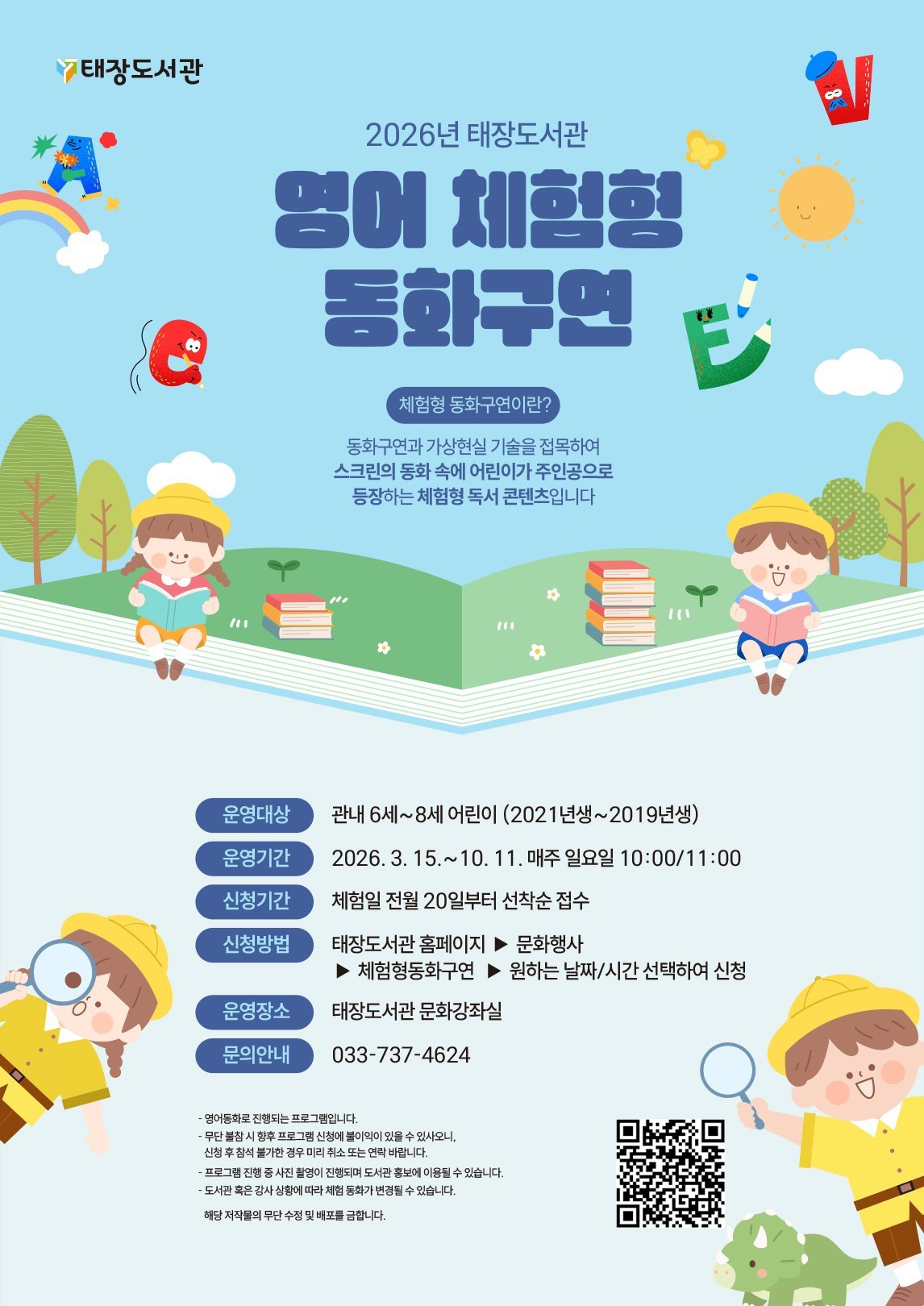 [아시아월드뉴스] 원주시 태장도서관은 올해 신규 프로그램으로 오는 3월부터 6∼8세 어린이를 대상으로 한 ‘영어 체험형 동화구연’을 운영한다.