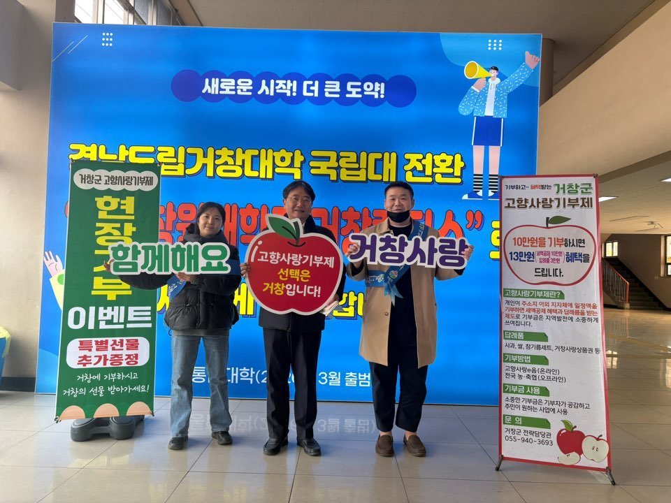 이남열 전략담당관은 "고향사랑기부제는 단순한 기부를 넘어 거창의 미래를 함께 만들어 가는 소중한 동행"이라며 "거창을 사랑하는 마음으로 모금된 소중한 기부금은 거창군의 발전과 주민들을 위해 더욱 의미 있게 사용하겠다"고 말했다.