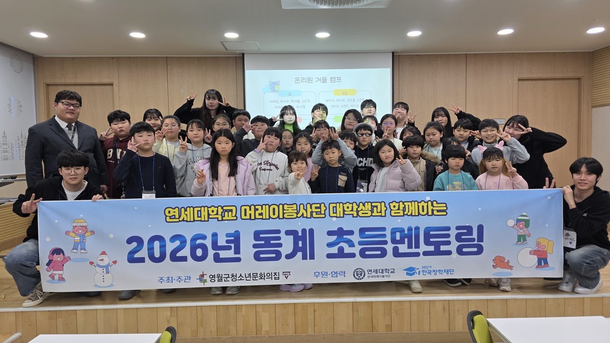 [아시아월드뉴스] 영월군청소년문화의집은 지난 2월 9일부터 13일까지 5일간 지역 초등학생과 대학생 멘토가 함께한 ‘연세대학교 머레이봉사단과 함께하는 2026년 동계 초등 멘토링’프로그램을 성황리에 마쳤다고 밝혔다.
