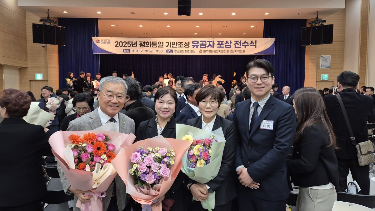 [아시아월드뉴스] 민주평화통일자문회의 합천군협의회는 2월 20일 오전 10시30분, 경남도청 대회의실에서 열린 '2025년 평화통일 기반조성 유공자 포상 전수식'에서 이선둘 자문위원, 합천군협의회가 민주평화통일자문회의 의장 표창을 수상했으며 하명화 자문위원은 경상남도지사 표창을 수상했다고 전했다.