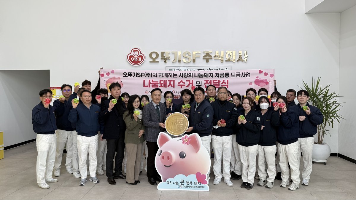 김성진 위원장은 “한 해 동안 따뜻한 마음으로 돼지저금통을 채워주신 오뚜기에스에프 임직원 여러분께 깊이 감사드린다”며 “기업과 지역사회가 함께 만드는 따뜻한 나눔문화가 확산되길 기대한다”고 감사의 뜻을 전했다.