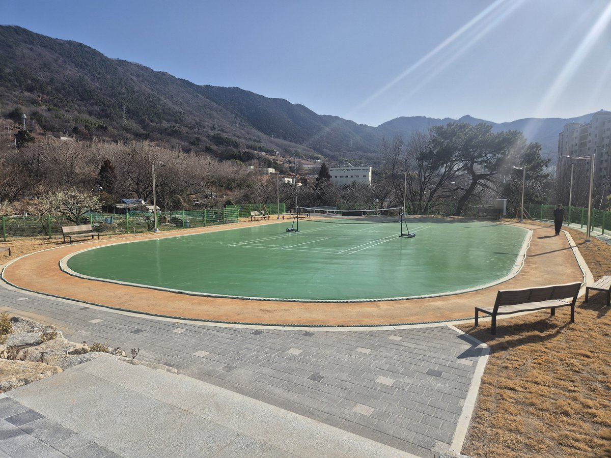 주요 공사내용은 다목적구장 1개소, 운동기구 9종, 맨발걷기길 조성, 세족장, 퍼걸러, 기존 족구장 인조잔디를 교체했고 작년 8월에 착공해 6개월 만에 완료하게 됐다.