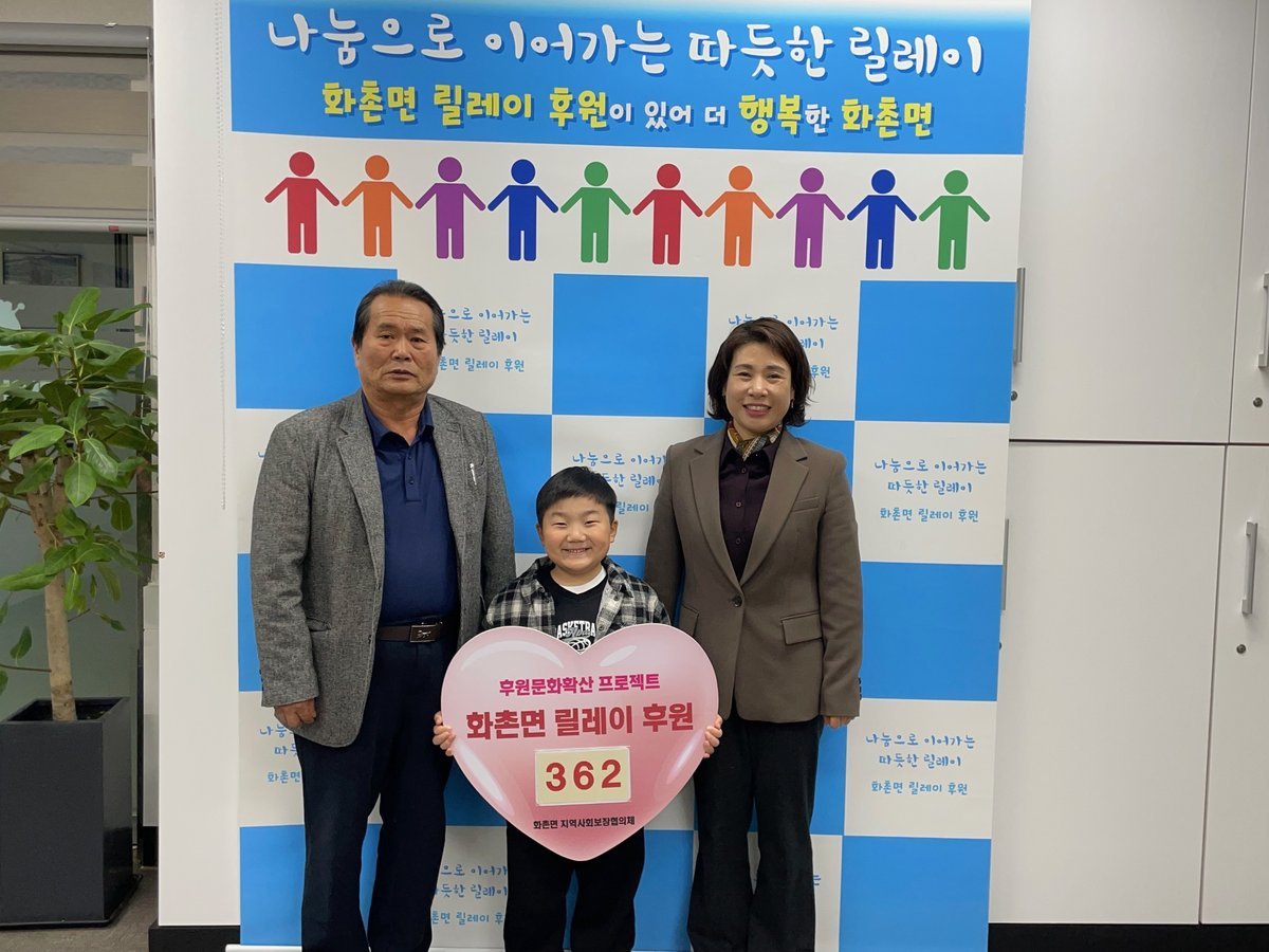 한편 화촌면 릴레이 후원은 주민과 단체, 기업 등이 자발적으로 참여해 어려운 이웃을 돕는 나눔 운동이다.