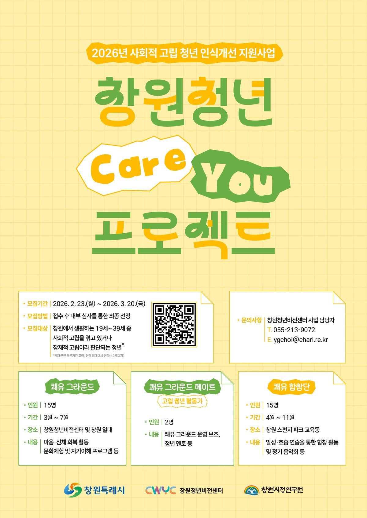 창원청년정보플랫폼 누리집, 웹 포스터의 QR코드와 이메일을 통해서도 접수할 수 있다.
