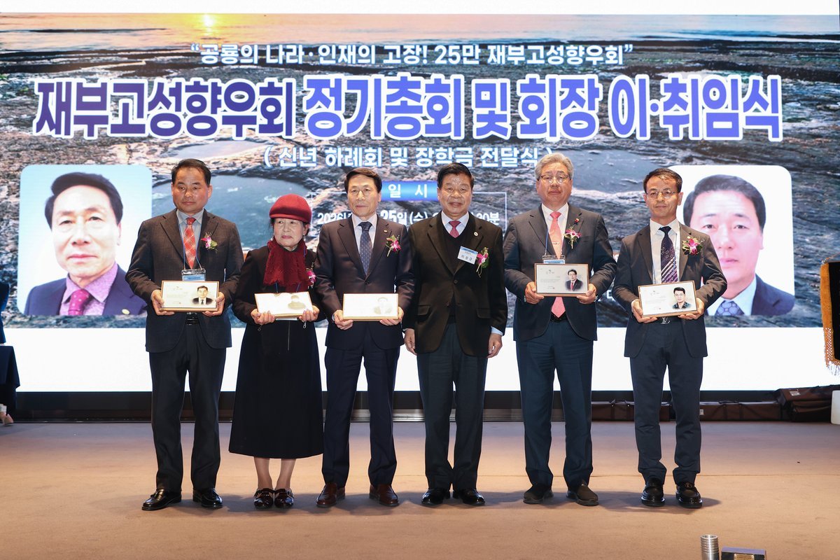 고우장학생 22명에게 장학금을 전달한 데 이어 제44대 집행부를 이끈 전영옥 재부산고성향우회 직전회장과 황소용 고문, 김계자 자문위원, 김기용 기획총무위원장, 그리고 제정철 부회장에게 감사패를 수여했다.