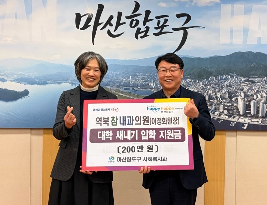 서호관 마산합포구청장은 "고향을 잊지 않고 따뜻한 마음을 전해주신 이정화 원장님께 깊이 감사드린다"며 "보내주신 성금이 대학 신입생들의 새로운 출발에 든든한 힘이 되길 바라며 구에서도 학생들의 꿈을 향한 도전을 적극 지원하겠다"고 전했다.