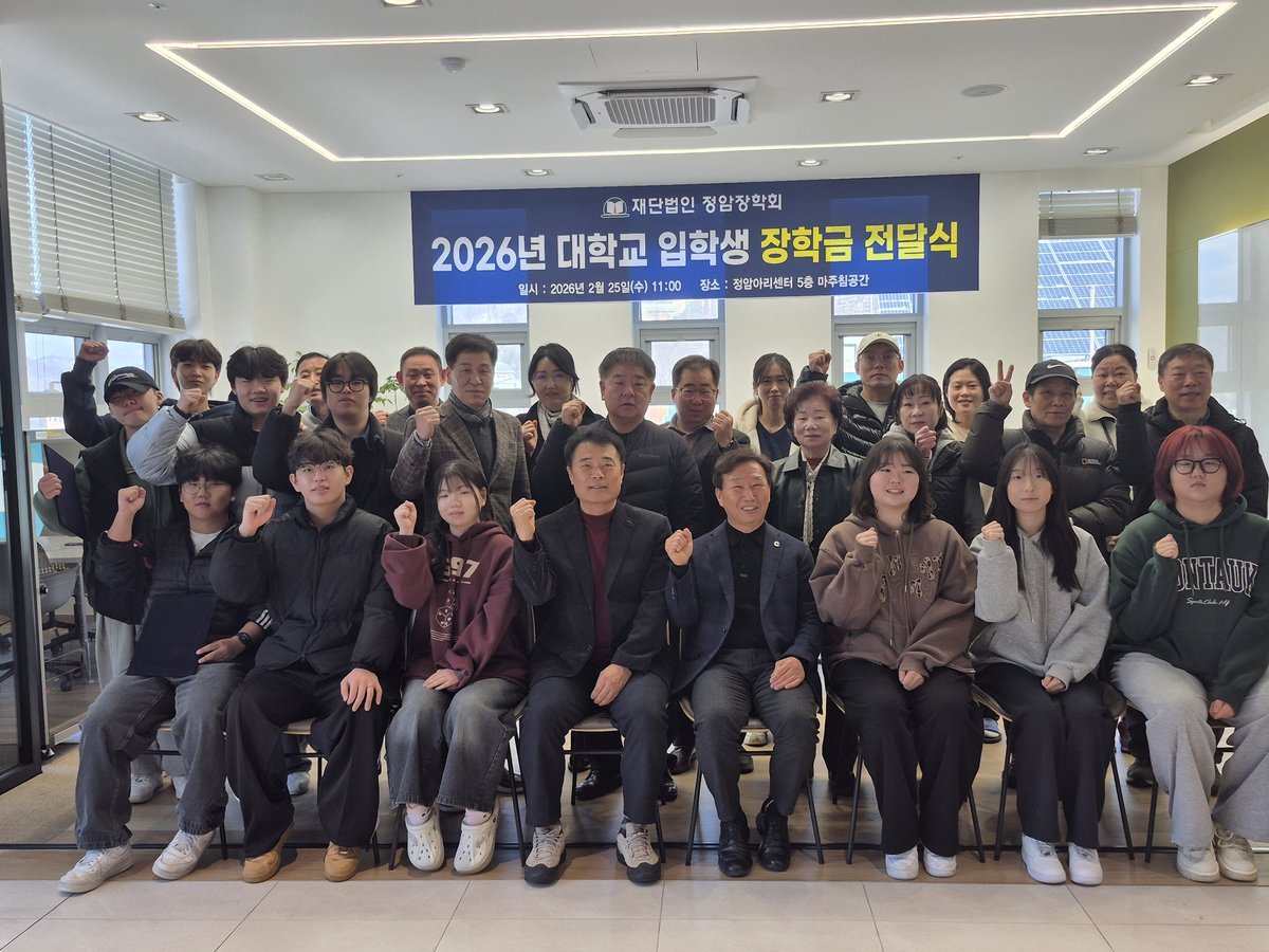 [아시아월드뉴스] 정암장학회는 25일 고한정암아리센터에서 2026년도 대학교 입학생들에게 4년제는 150만원 2년제는 100만원씩 ‘장학금’을 전달했다.