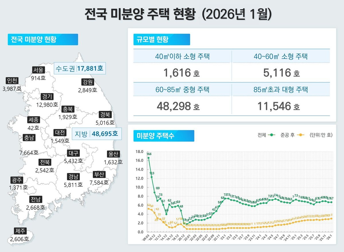 미분양 주택: 수도권 17,881호, 비수도권 48,695호