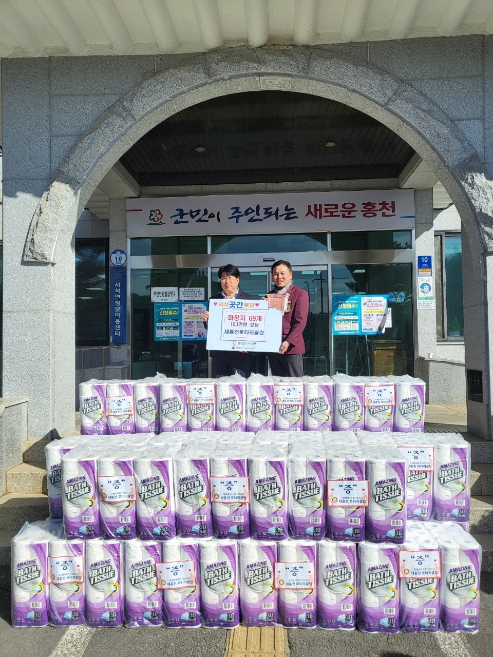 새홍천로타리클럽은 2월 26일 서석면 행정복지센터를 방문해 100만원 상당의 생필품을 ‘서석곳간’에 전달했다.