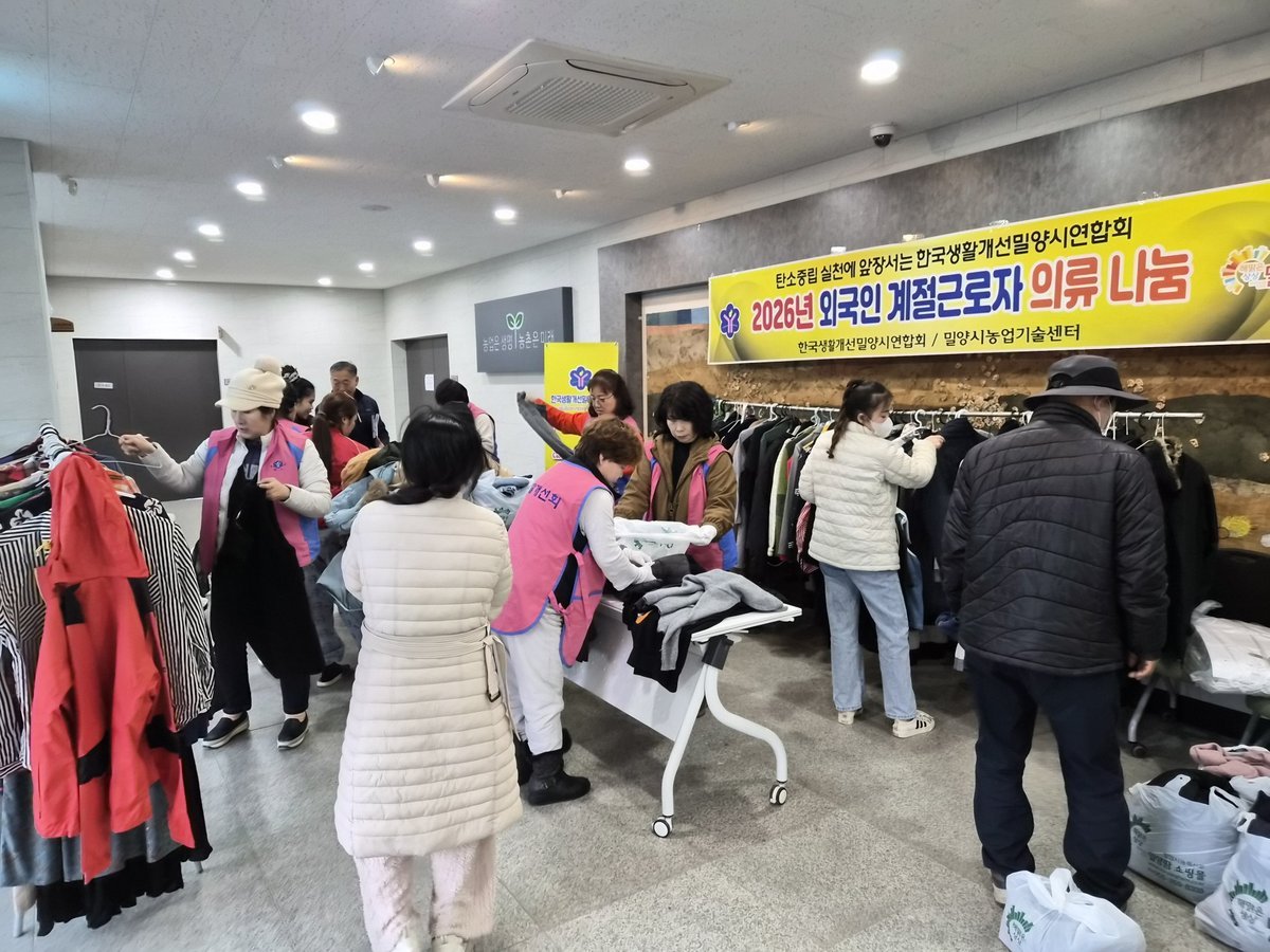 [아시아월드뉴스] 한국생활개선밀양시연합회는 27일 밀양시농업기술센터 농업인교육관에서 2024년부터 3년째 이어오고 있는 외국인 계절 근로자를 위한 '사랑의 의류 나눔 행사'를 개최했다.