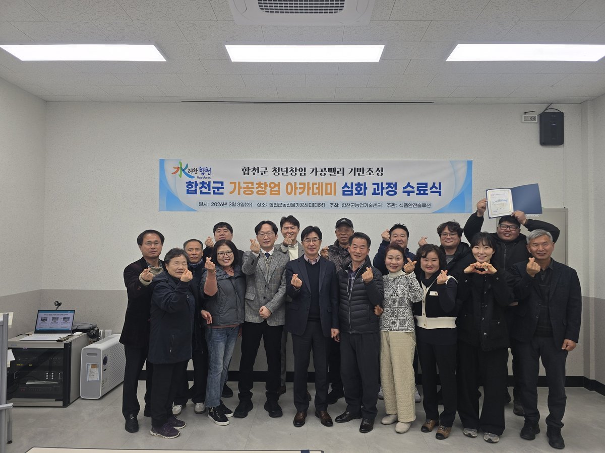 [아시아월드뉴스] 합천군은 3월 3일 먹거리통합지원센터 회의실에서 2025년 농산물가공창업 아카데미 교육 심화과정 수료식을 개최했다.
