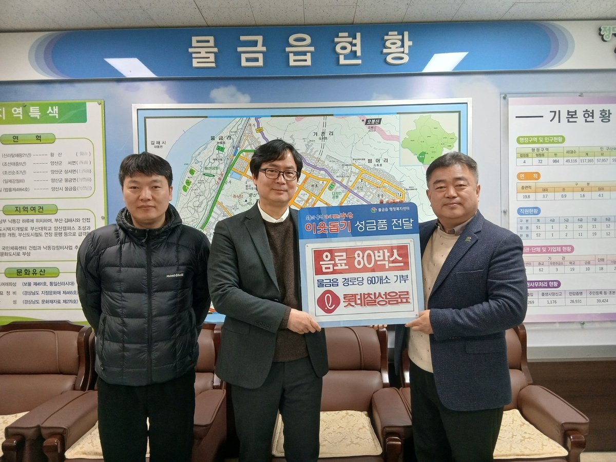 심주석 물금읍장은 "롯데칠성음료의 따뜻한 기부에 깊은 감사의 뜻을 전하며 이러한 기부 활동은 우리 사회의 귀감이 되고 있다. 지역 어르신들께 큰 행복과 활력이 될 것"이라며 "지속적으로 지역사회와 기업이 함께 상생할 수 있는 기회가 많이 마련되길 바란다"는 소감을 밝혔다.