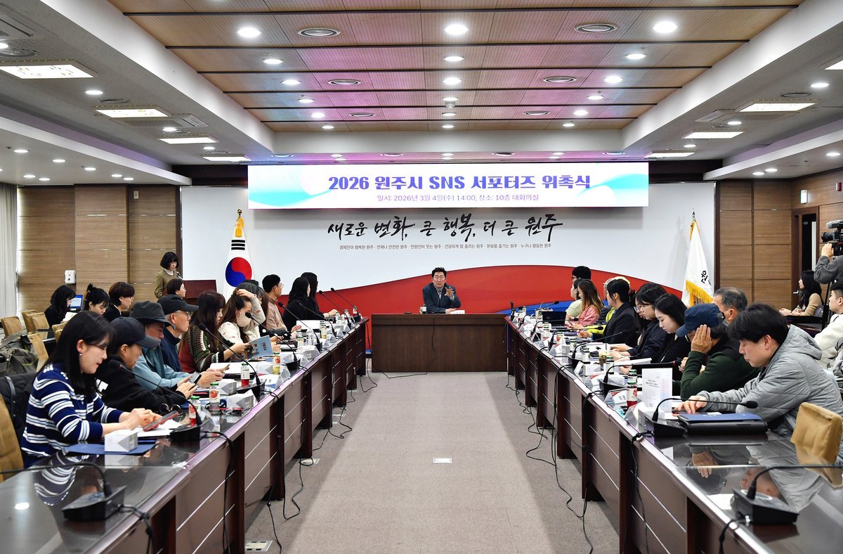 [아시아월드뉴스] 원주시는 지난 4일 시청 대회의실에서 ‘2026원주시 SNS서포터즈’위촉식을 개최했다.