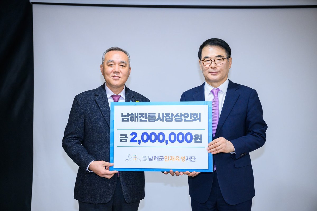 [아시아월드뉴스] 남해군인재육성재단은 남해전통시장 상인회에서 200만원, 패류살포양식수협남해군협의회에서 300만원의 인재육성기금을 기탁했다고 밝혔다.