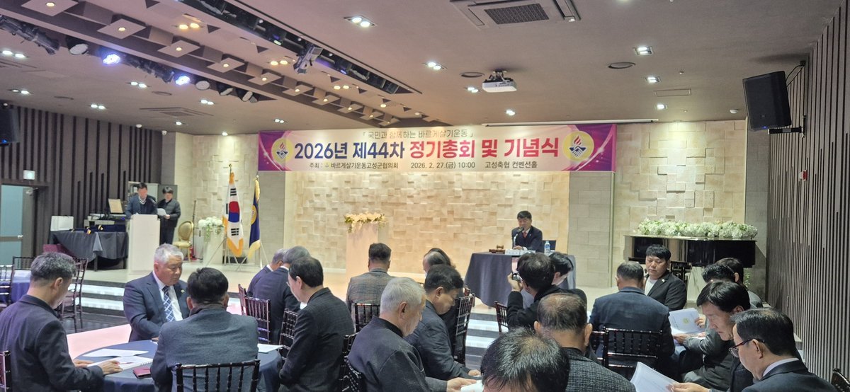 [아시아월드뉴스] 바르게살기운동 고성군협의회는 2월 27일 고성축협 컨벤션홀에서 제44차 정기총회를 개최했다.