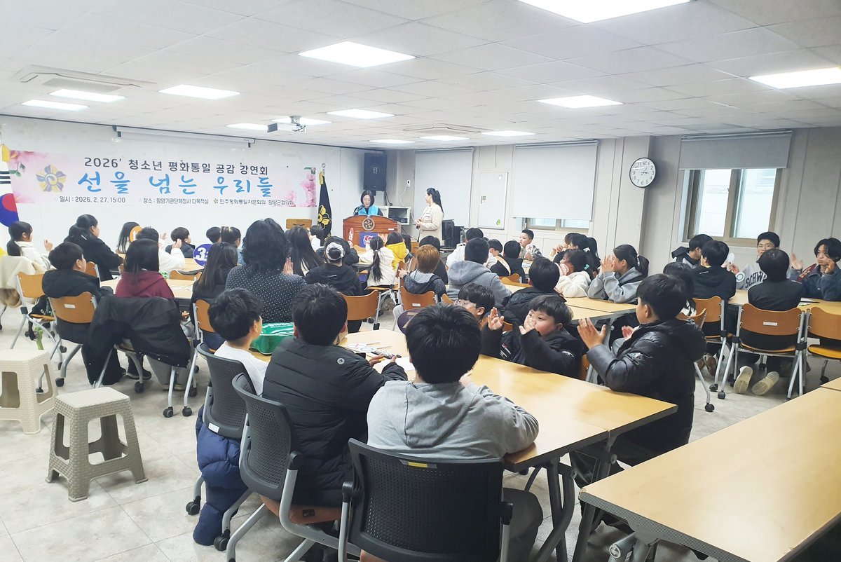 [아시아월드뉴스] 민주평화통일자문회의 함양군협의회는 지난 2월 27일 기관단체청사 다목적실에서 청소년과 인솔 교사, 관계자 등 80명이 참석한 가운데 '청소년 평화통일 공감 강연회'를 개최했다.