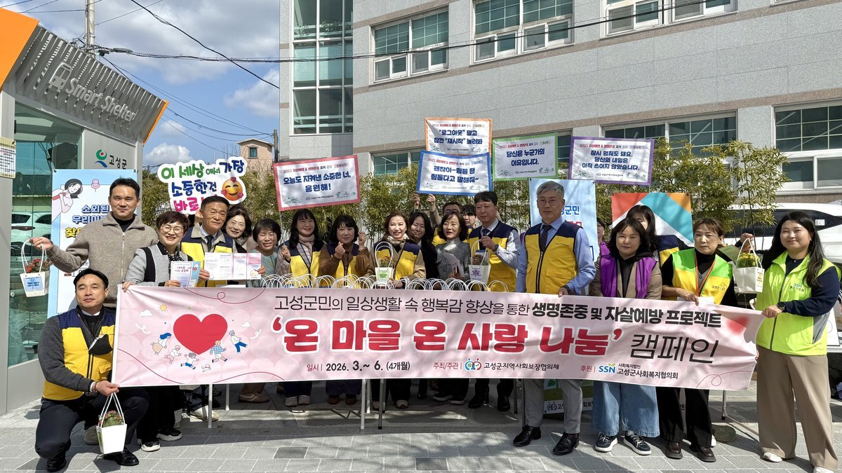 [아시아월드뉴스] 고성군지역사회보장협의체 지역공동체분과와 자살예방분과는 3월 4일 학우사 버스정류장 인근에서 ‘고성군민 행복캠페인’행사를 개최했다.