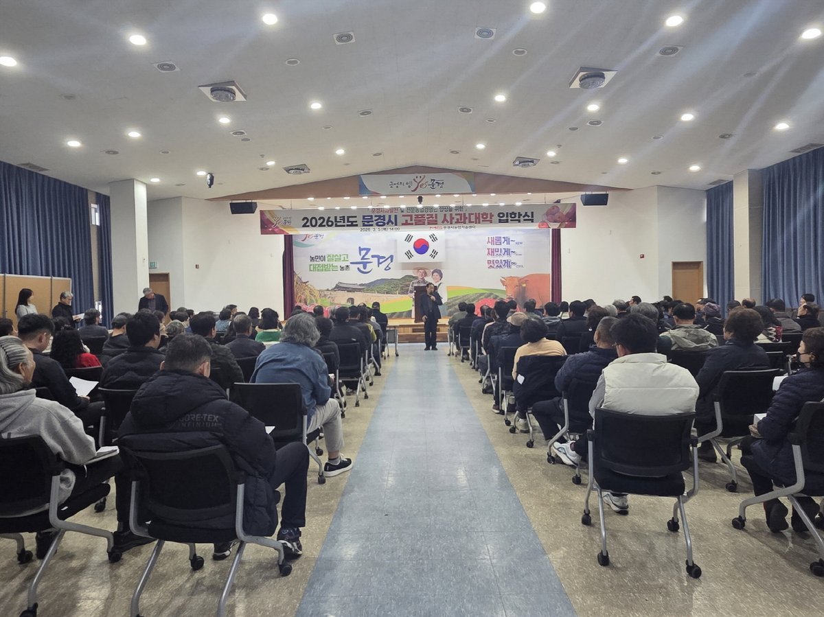 [아시아월드뉴스] 문경시농업기술센터는 지난 3월 5일 농업기술센터 대강당에서 2026년도 문경시 고품질 사과대학 입학식을 개최하고 본격적인 교육과정 운영에 들어갔다.