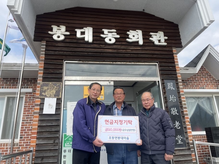 김영근 초동면장은 "액운을 막고 복을 나눈다는 정월대보름의 의미를 살려 이웃을 위한 나눔을 실천해 주신 봉대마을 주민들께 감사드린다"라며 "전달된 성금은 어려운 이웃에게 소중히 전달하겠다"라고 말했다.