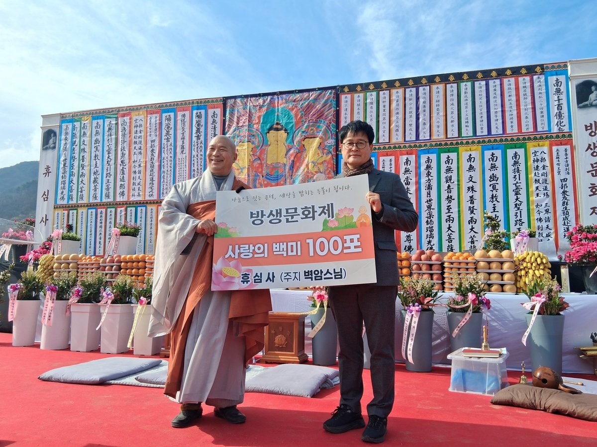 임효원 화개면장은 “이번 방생 문화제에서의 기탁은 부처님의 가르침을 실천하는 진정성 있는 나눔”이라며 “항상 주변을 돌아보고 나눔의 손길을 보내주신 휴심사에 깊은 감사의 뜻을 전한다”고 밝혔다.