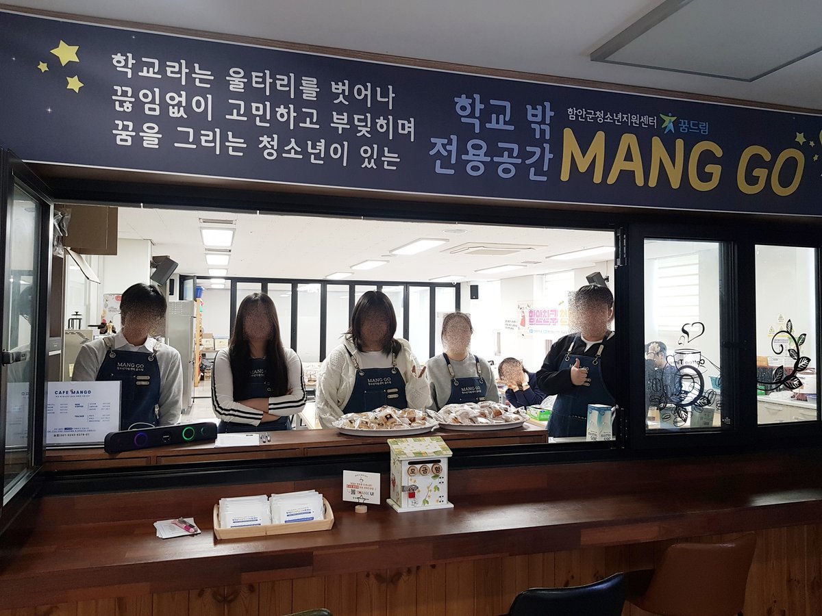 [아시아월드뉴스] 함안군은 지난 6일 함안군학교밖청소년지원센터가 함안군 청소년수련관 3층 학교 밖 직업체험장에서 일일 카페 '카페 망고'의 운영을 시작했다고 밝혔다.