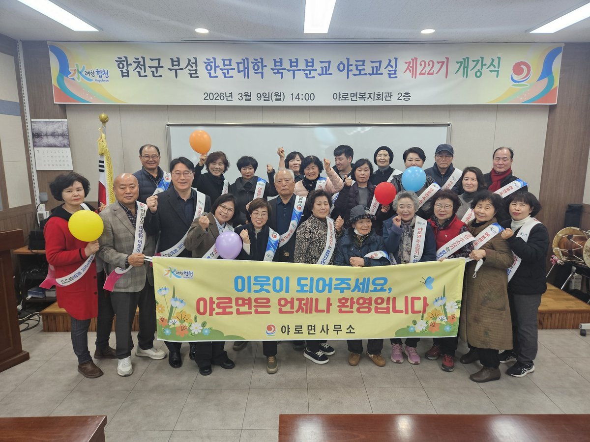 [아시아월드뉴스] 합천군 부설 한문대학 제22기 북부분교 야로교실은 9일 야로면 복지회관 2층 소강의실에서 개강식을 개최하고 본격적인 운영에 들어간다고 밝혔다.