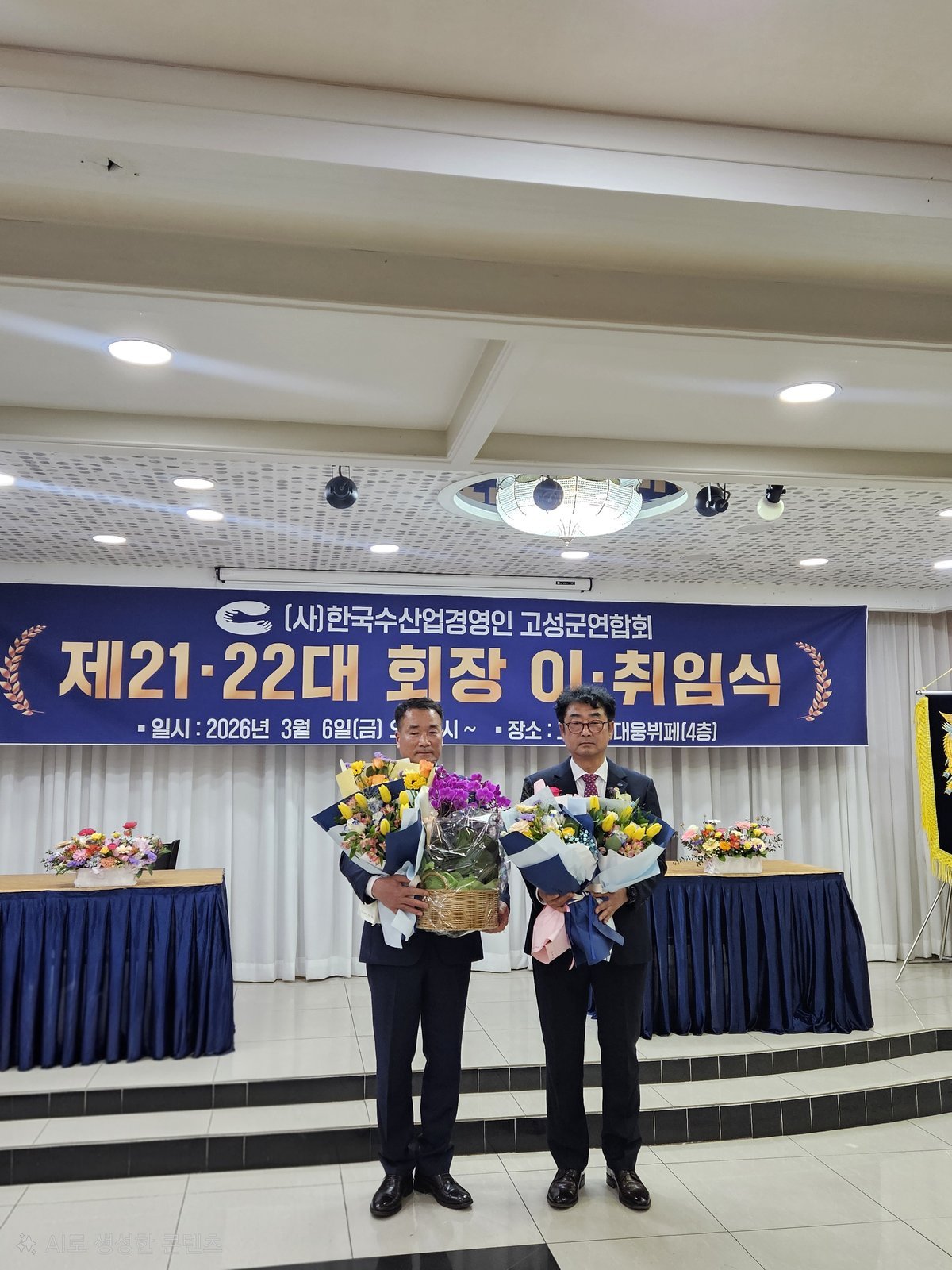 [아시아월드뉴스] 한국수산업경영인 경남고성군연합회는 3월 9일 대웅뷔페 4층에서 제21 22대 회장 이취임식을 개최했다.