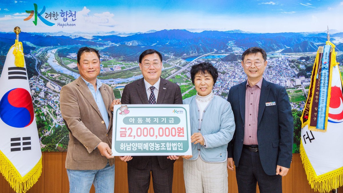 [아시아월드뉴스] 하남양떡메영농조합법인은 9일 합천군청을 방문해 아동복지기금 200만원을 전달했다.