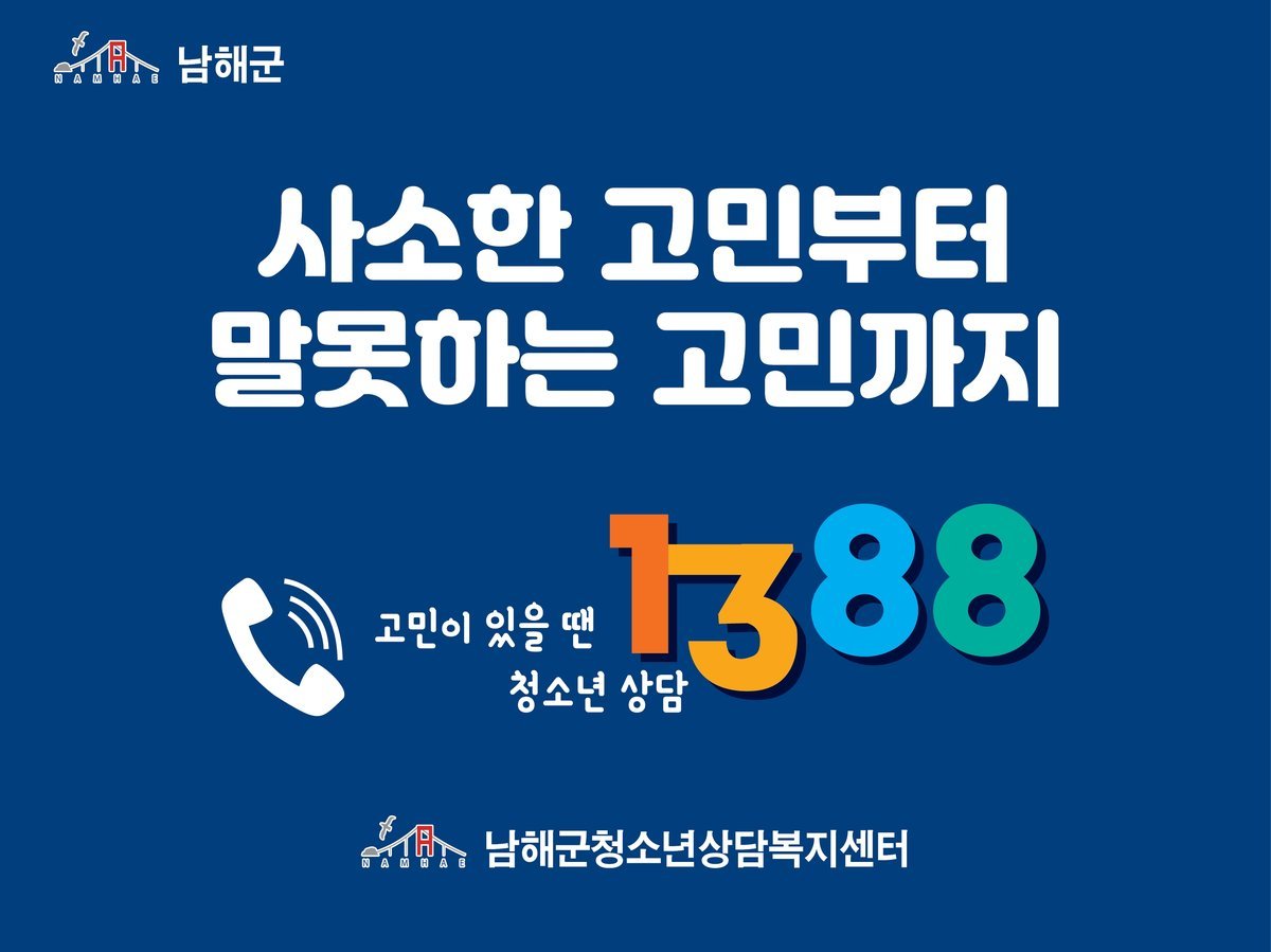 김경주 남해군청소년상담복지센터장은 “새로운 환경에 적응하는 과정에서 청소년들이 심리적으로 지치기 쉬운 시기”며 “이번 집중 홍보를 통해 혼자 해결하기 어려운 고민을 상담을 통해 나누고 마음의 힘을 얻는 계기가 되길 바란다”고 말했다.
