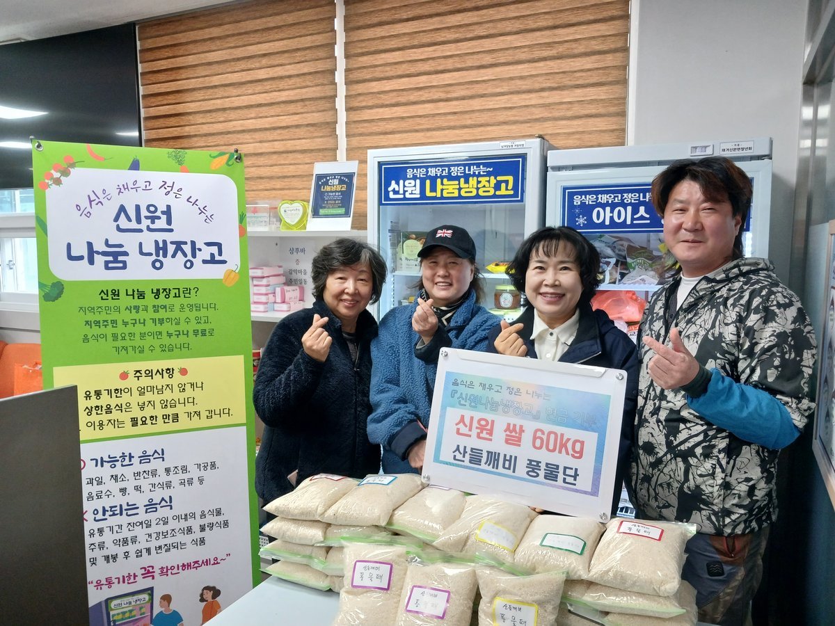 이번 전달식은 지난 3일 정월대보름 맞이 지신밟기에서 받은 주민들의 쌀로 전달해 지역사회 나눔 문화 확산에 기여했으며 기부 물품은 신원면민이 언제든지 들고 갈 있도록 나눔냉장고 비치됐다.