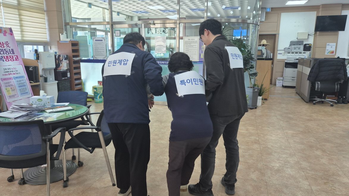 이날 훈련에서는 민원 담당자의 휴대용 보호장비 사용법을 숙지하고 경찰서와 연계된 안심 비상벨의 정상 작동 여부를 확인했으며 민원인 제압과 경찰 인계 등 상황별 대응 절차와 대응반별 역할을 중점적으로 점검했다.
