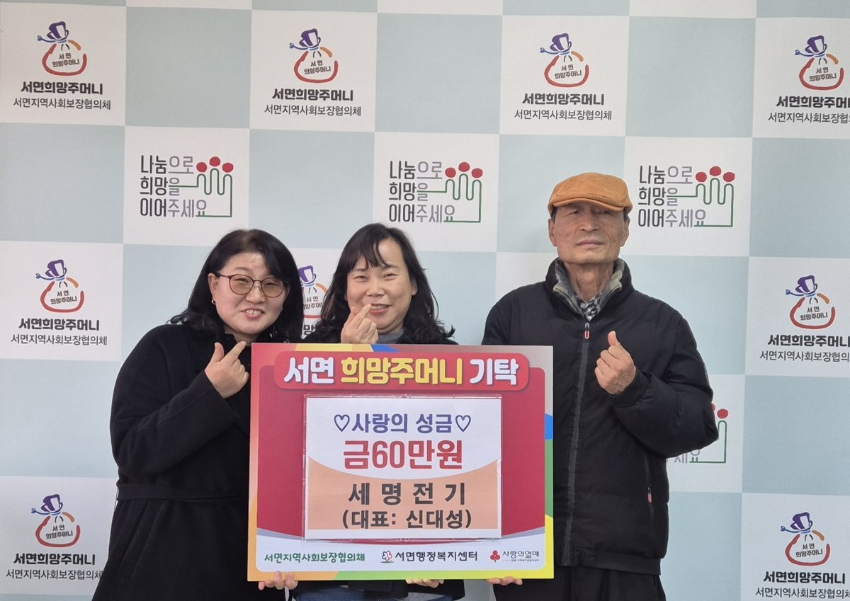 허은숙 서면장은 “지역의 어려운 이웃을 위해 따뜻한 마음을 전해주신 세명전기에 감사드리며 기탁해 주신 성금은 도움이 필요한 이웃들을 위해 소중히 사용하겠다”고 말했다.