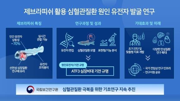 [아시아월드뉴스] 국립보건연구원은 제브라피쉬 동물모델을 활용해 유전성 심혈관질환의 원인이 되는 유전자를 찾고, 질환이 생기는 과정을 밝히는 연구를 수행하고 있다.