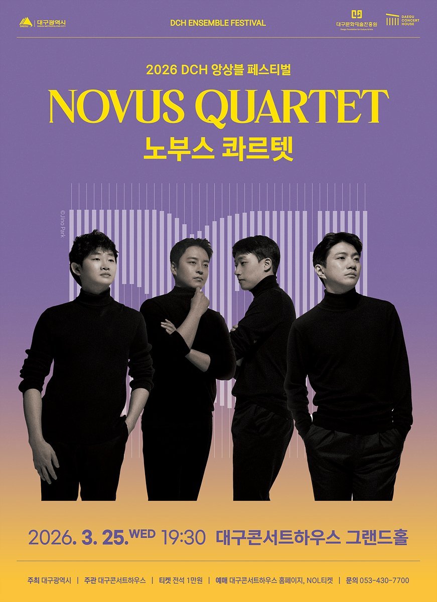 세계적인 현악사중주단 ‘노부스 콰르텟’의 공연이 오는 3월 25일 오후 7시 30분 대구콘서트하우스 그랜드홀에서 열린다.