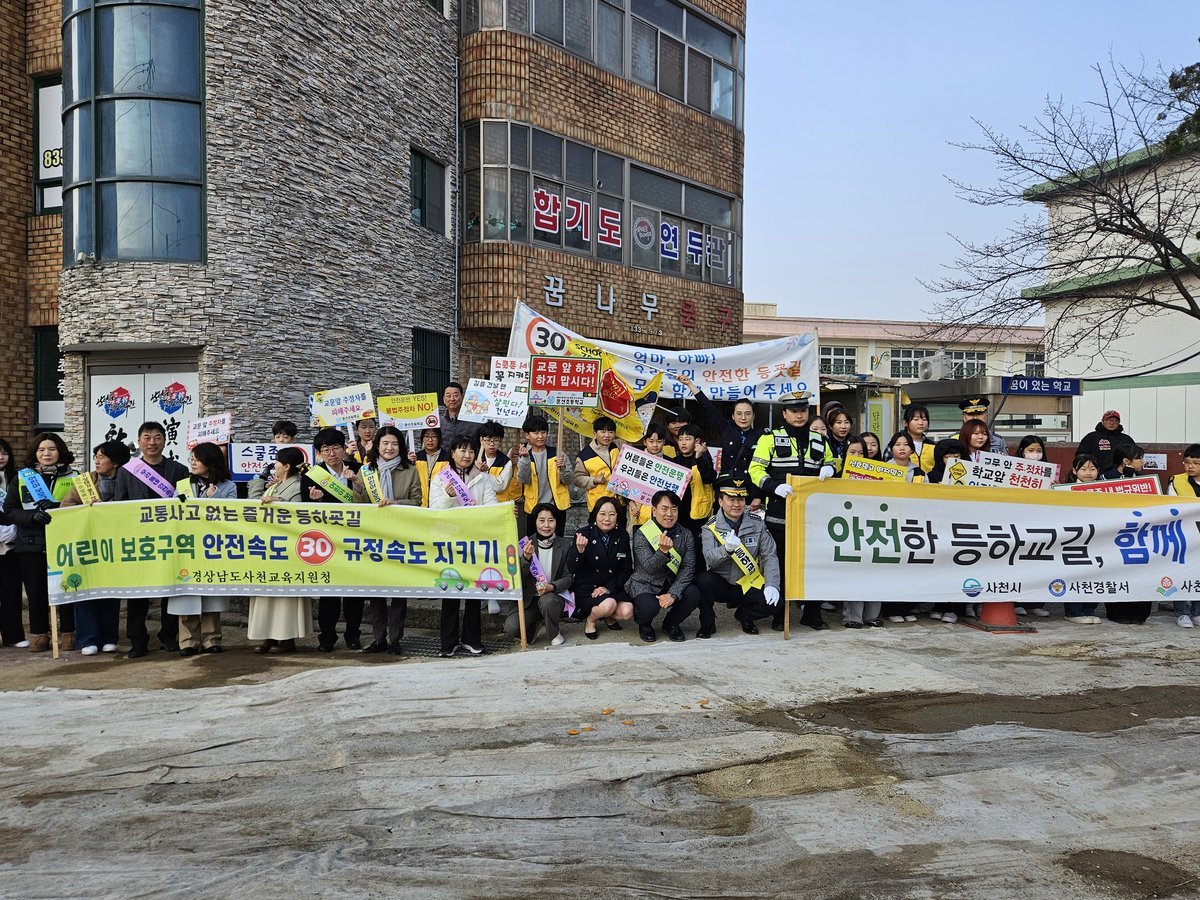 사천시는 3월 11일 오전 8시 문선초등학교와 노산초등학교 후문 일원에서 사천시청, 사천교육지원청, 사천경찰서 모범운전자회, 녹색어머니회, 문선초등학교와 노산초등학교 교사와 학생 등 약 100여 명이 참여한 가운데 등굣길 교통안전을 캠페인을 동시에 진행했다.