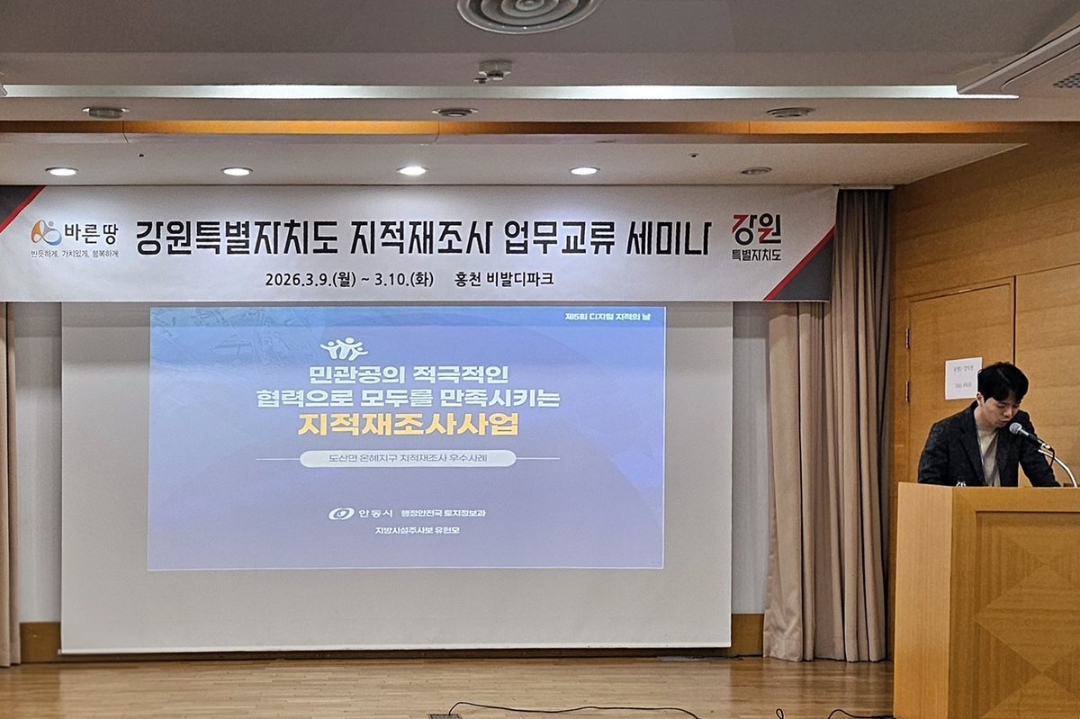 [아시아월드뉴스] 안동시는 지난 3월 9일 강원특별자치도에서 주최한 ‘지적재조사 업무교류 세미나’에서 우수사례 공유를 위한 연사로 초청돼 안동시의 지적재조사 추진 우수사례와 사업 추진 현황을 발표했다.