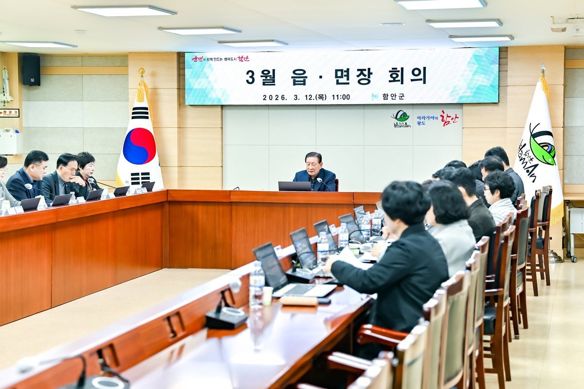 이날 회의는 제33회 함안낙회놀이 공개행사 2026년 함안형 통합돌봄사업 추진 농어업인수당 지원사업 신청 등 군정 주요 현안과 협조 사항에 대해 보고하는 시간을 가졌다.