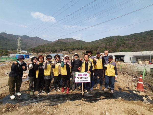 [아시아월드뉴스] 양산시 강서동 주민자치회는 지난 11일 관내 휴경지에 ‘강서동 사랑나눔 텃밭 가꾸기 사업’의 일환으로 감자 심기 행사를 실시했다.