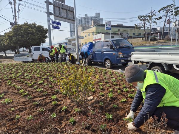 [아시아월드뉴스] 남해읍 행정복지센터는 남해읍 지역의 경관을 개선하고 주민들에게 계절의 변화를 가까이에서 느낄 수 있는 쾌적한 환경을 제공하기 위해 10일부터 남해교차로 등 읍내 주요 10개 지점에 크리산세멈과 리빙스턴데이지 등 봄꽃 2종 9000본을 식재했다.