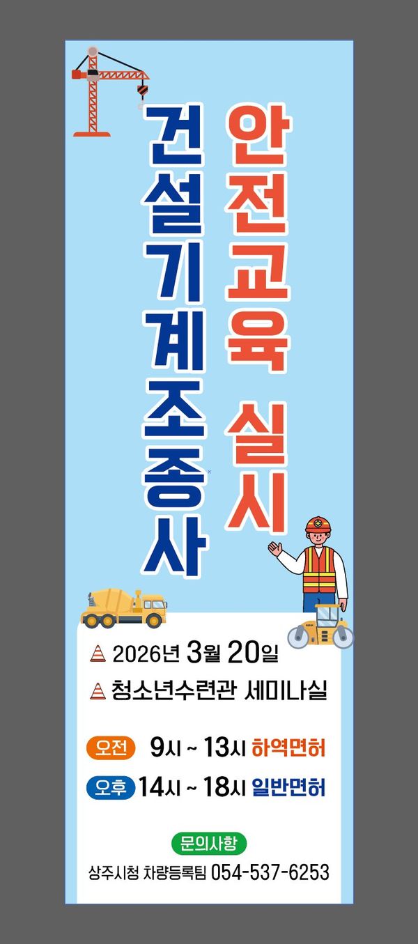 [아시아월드뉴스] 상주시는 오는 20일 청소년수련관 세미나실에서 2026년 건설기계조종사 안전교육을 실시한다.