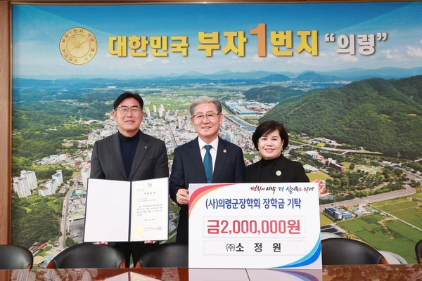 [아시아월드뉴스] 의령군은 지난 10일 소정원이 지역 교육 발전과 인재 양성을 위해 의령군장학회에 장학금 200만원을 기탁했다고 밝혔다.