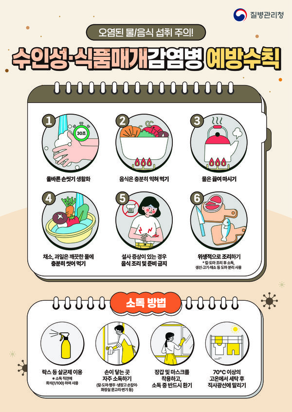 특히 화장실 이용 후, 음식 조리 전 후, 식사 전 손 씻기 습관을 철저히 지켜야 한다.