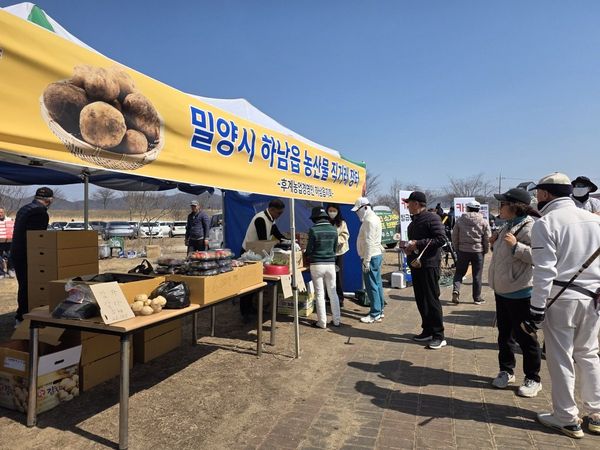 [아시아월드뉴스] 한국후계농업경영인회 하남읍지회는 지난 14일부터 15일까지 이틀간 밀양시 하남파크골프장 일원에서 열린 '제20회 밀양시장배 전국파크골프대회'예선전 기간에 맞춰 지역 농특산물 판매 행사를 개최했다.